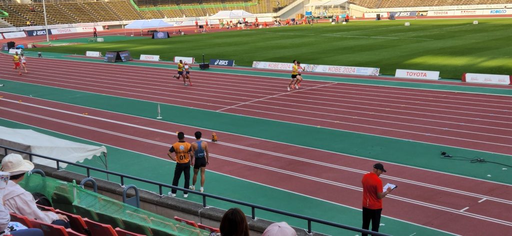トラックでは400m T11(視覚障がい)。フィールドでは、走幅跳 T11(視覚障がい)。共にアシスタントと協力して競技。